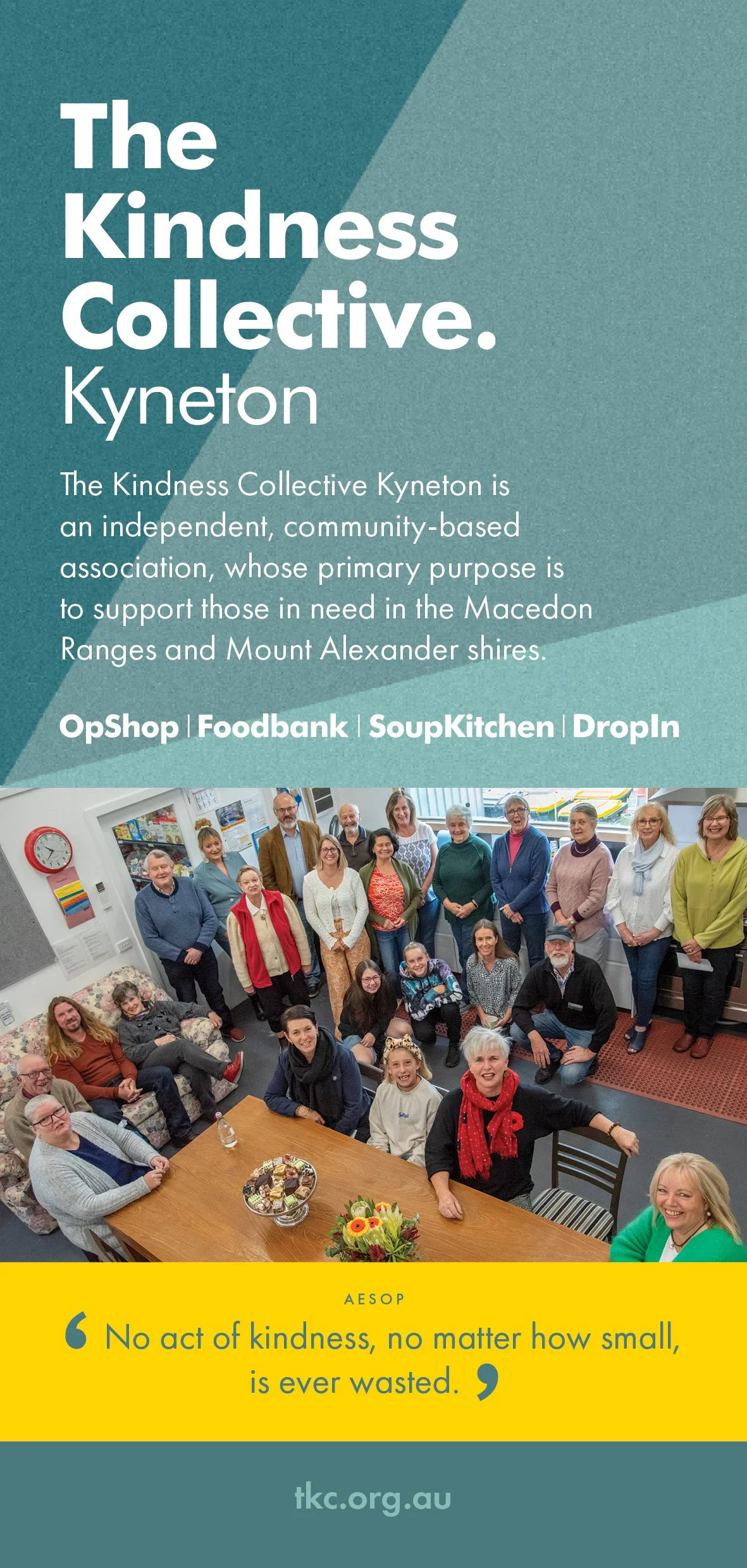 As a self-funded not-for-profit organisation, The Kindness Collective’s day-to-day operation is largely funded by its opportunity shop – located at 60 Mollison Street, Kyneton. Secondary sources of funding include financial donations from individuals, business and local church organisations.